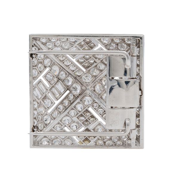 peso 20 gr.taglio brillante e taglio antico ct 6,50 circa, colore G/H - purezza VVS/SI e diamanti taglio baguette ct 1 circa, colore G/H - purezza VVS,