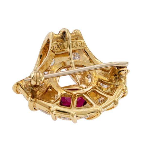 Spilla pendente in oro giallo 18kt rubino naturale e diamanti
