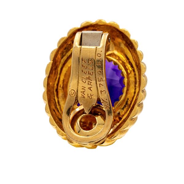 peso 21 gr.in oro giallo 18kt e ametiste taglio brillante, dimensioni 2,2x1,8 cm.