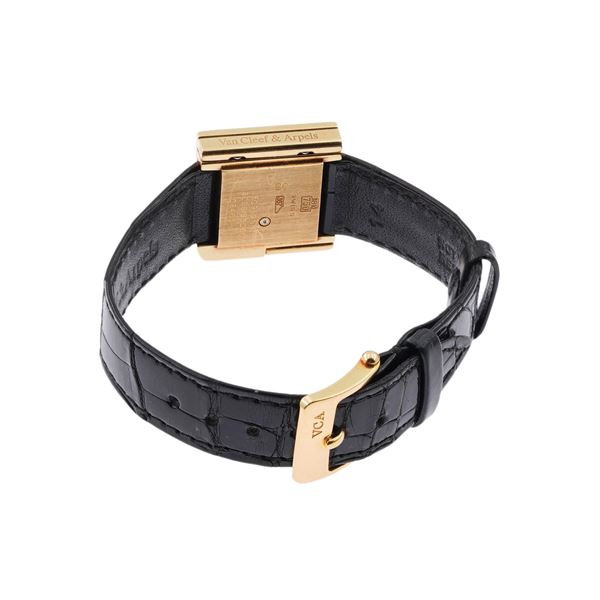 in oro giallo 18kt 130959NN1 - 130961B3D60 - 108480, cassa carré 21 mm. lunetta con diamanti taglio brillante ct 3 circa, quadrante bianco con indici, vetro zaffiro, movimento al quarzo, completo di cinturino originale con fibbia in oro giallo 18kt, cassa, quadrante e movimento firmati