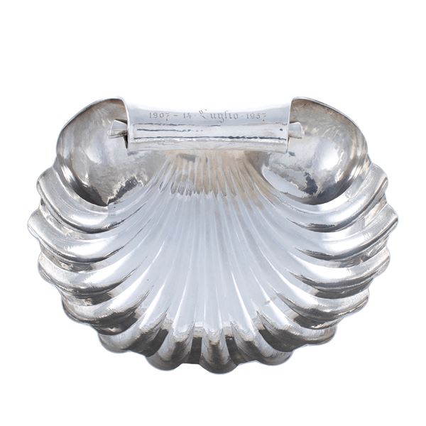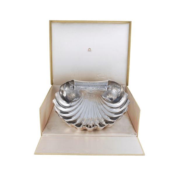 12x40x33 cm.grande centrotavola a conchiglia in argento, firmato Buccellati, entro custodia originale, peso 2122 gr.