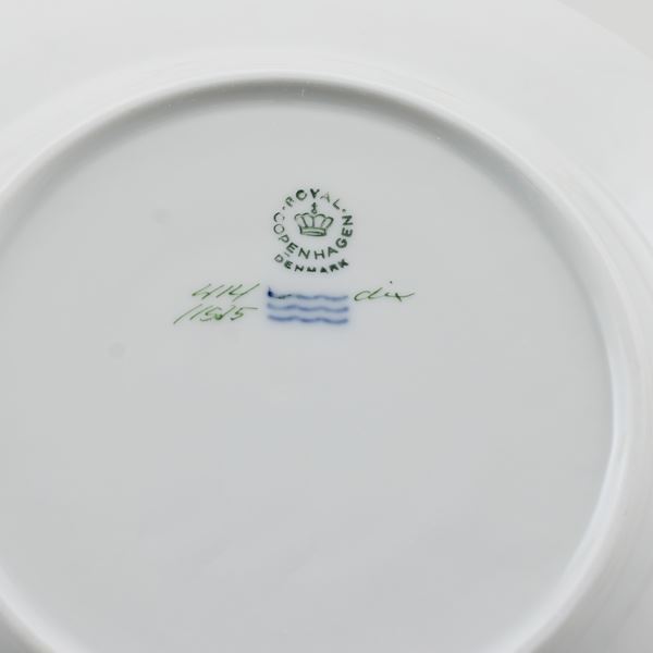 decoro "Gold Fun", in porcellana su fondo bianco con profilo dorato, marchio della produzione.