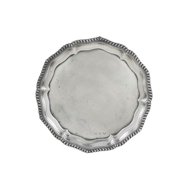 d. 22 cm.forma circolare, bordo godronato, poggiante su tre piedini, peso 416 gr.