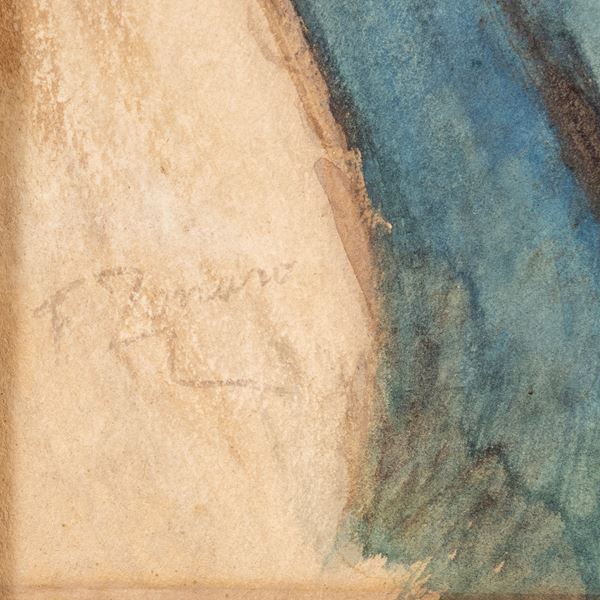 35x25 cm."Ritratto maschile", acquerello su carta, firmato in basso a destra, entro cornice