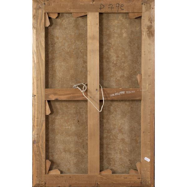 81x52 cm."La fine del duello", olio su tela, firmato in basso a destra, entro cornice