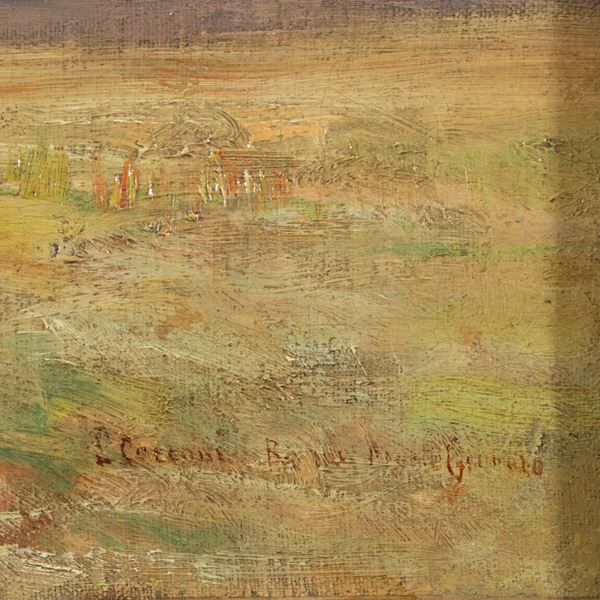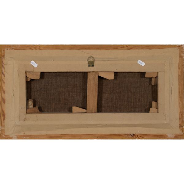 22x51 cm."Paesaggio", olio su tela, firmato in basso a destra, entro cornice