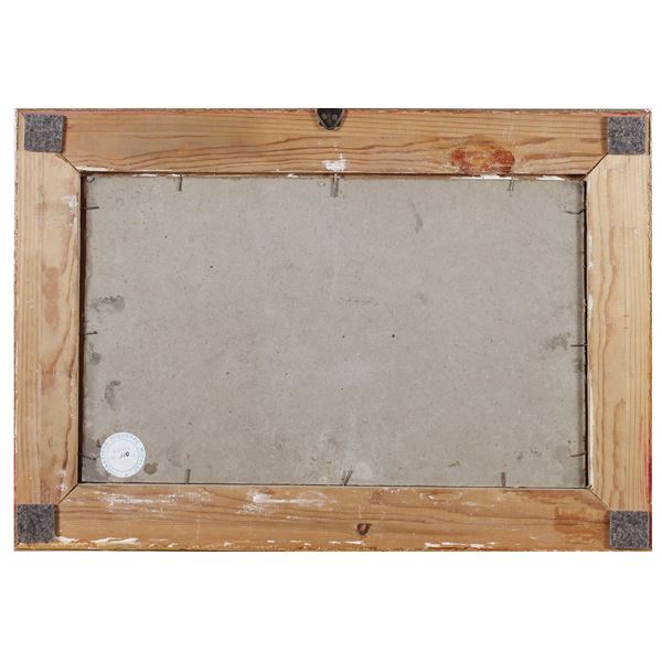 23x37 cm."Il tempio di Esculapio a Villa Borghese", 1934, olio su cartone, firmato e datato in basso a sinistra, entro cornice