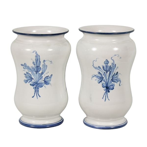 h. 30 cm.decorati con scene campestri entro riserve vegetali, firmati Ivano Pardi Castelli sotto la base