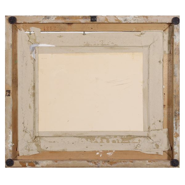 "Donne in terrazza", olio su cartone, firmato in basso a destra, entro cornice