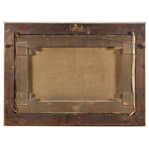 30x46,5 cm."Paesaggio con figure", 1812, olio su tela, siglato H. F. e datato in basso a sinistra, entro cornice