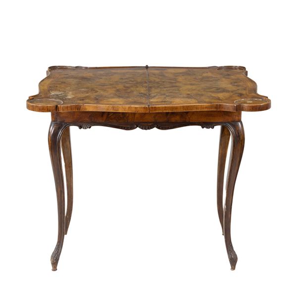 chiuso 75x45x82 cm. - aperto 75x90x82 cm.piano apribile poggiante su base di linea sagomata in legno intagliato con motivi floreali, difetti
