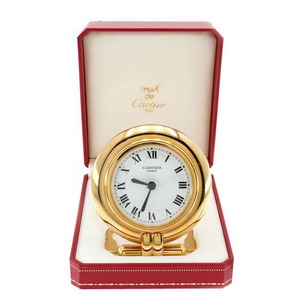 diametro 8 cm.placcata in oro, cassa tonda, quadrante bianco con numeri romani, movimento al quarzo, completo di scatola