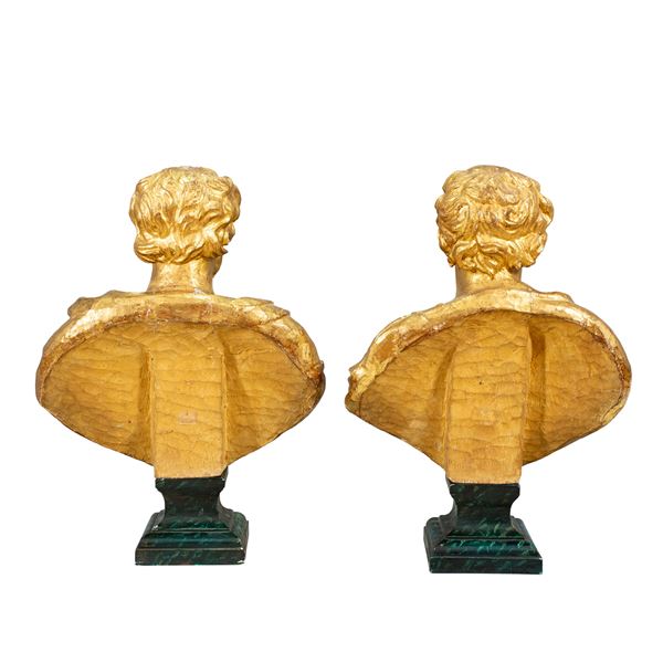 72x53x23 cm.raffiguranti due Imperatori Romani, poggianti su basi in legno laccato