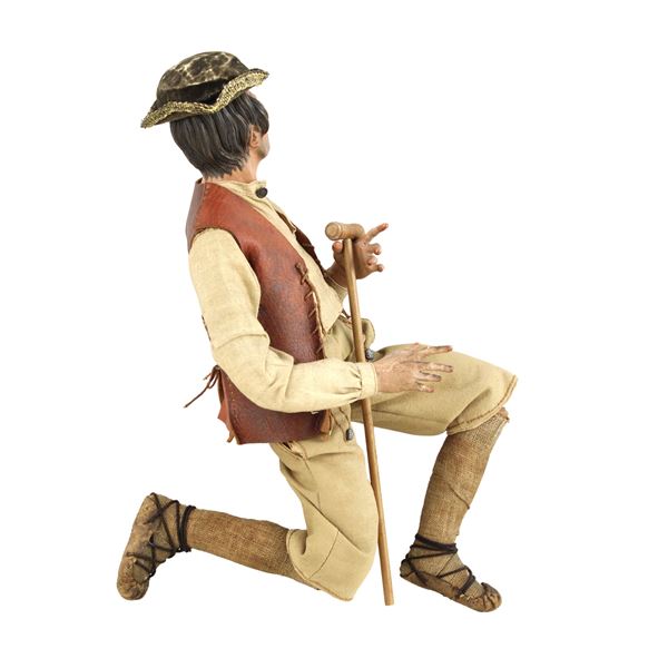 "Pastore", scultura da presepe in terracotta policroma, legno e tessuto, lievi difetti