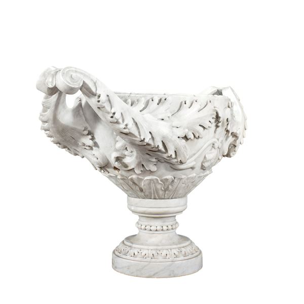 51x82x38 cm.scolpita con baccelli e ricchi motivi vegetali, poggiante su base circolare