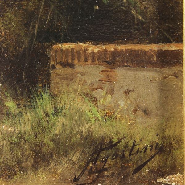 36x15,5 cm."Roma da Cecilia Metella", olio su tela, firmato in basso a destra, entro cornice