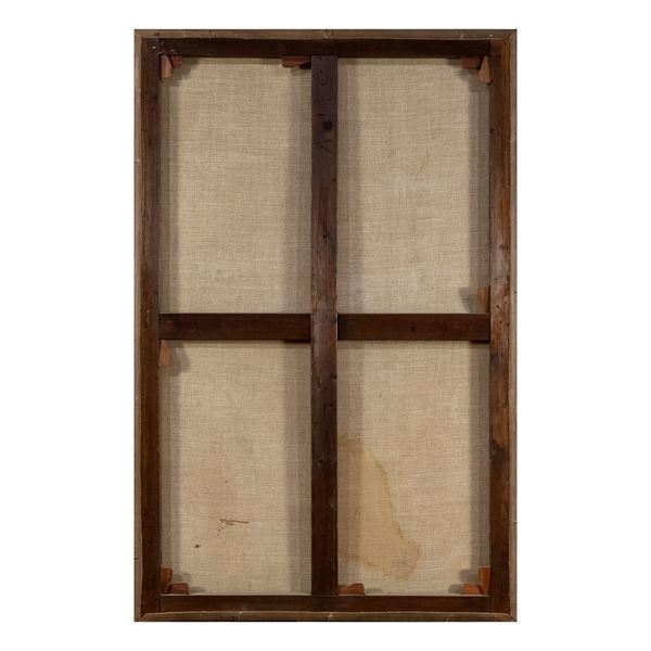 120x77,5 cm."Il brindisi", olio su tela, firmato in basso a sinistra