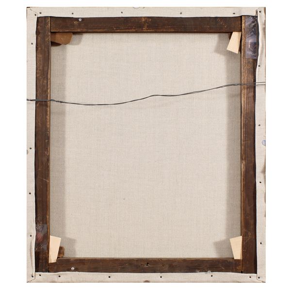 "Cacciatori al riposo", olio su tela, entro cornice