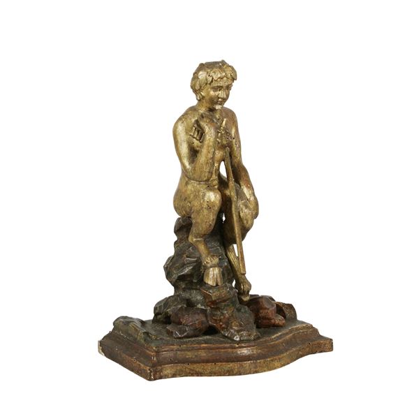 raffigurante un Satiro con flauto, poggiante su base sagomata, lievi difetti