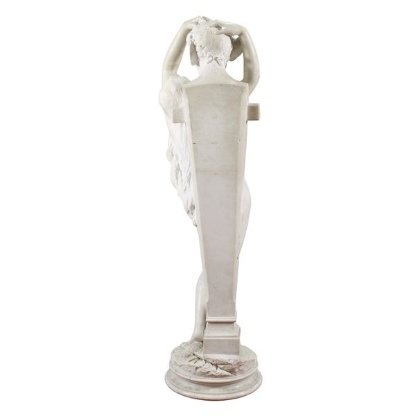 h. 155 cm.scolpito a raffigurare Ninfa con Satiro, poggiante su base circolare, braccio restaurato