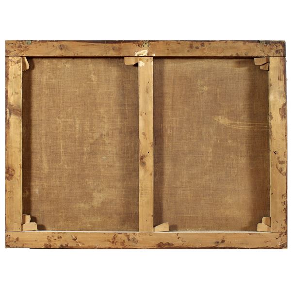 70,5x95x5 cm."Scena di battaglia", olio su tela, entro cornice