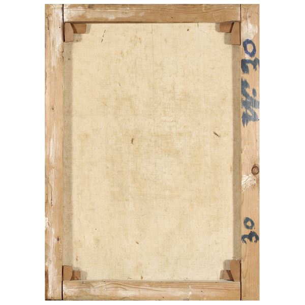 75x53,5 cm."Ritratto di filatrice", olio su tela, entro cornice coeva