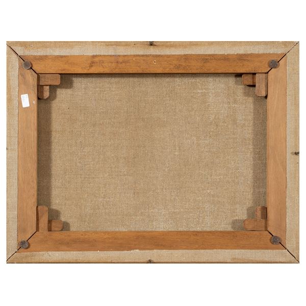 48x63 cm."Scena campestre con figure", olio su tela, entro cornice
