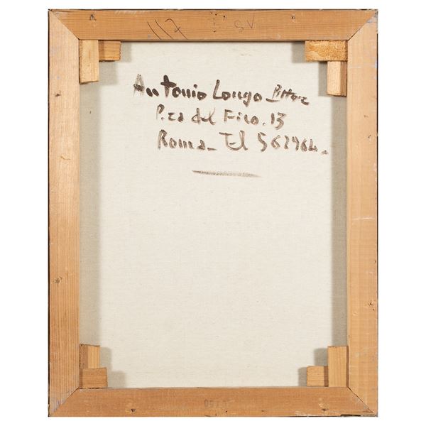 50x40 cm."Spiaggia con barca", acrilico su tela, firmato in basso a destra, entro cornice