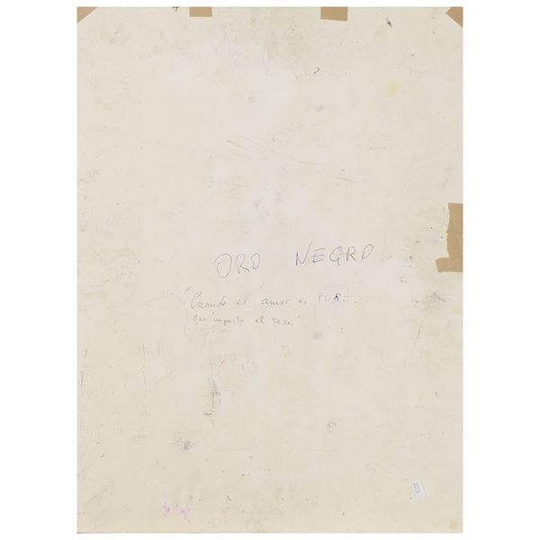 70x50 cm."Oro negro", tecnica mista su cartoncino, firmato Heidi in basso a destra e titolato sul retro, entro cornice