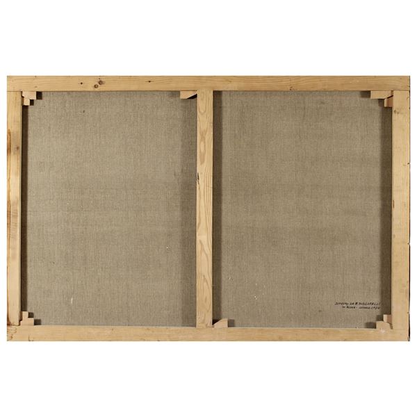 100x150 cm."Caccia al cervo", 1970, olio su tela, firmato e datato sul retro