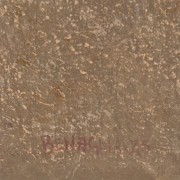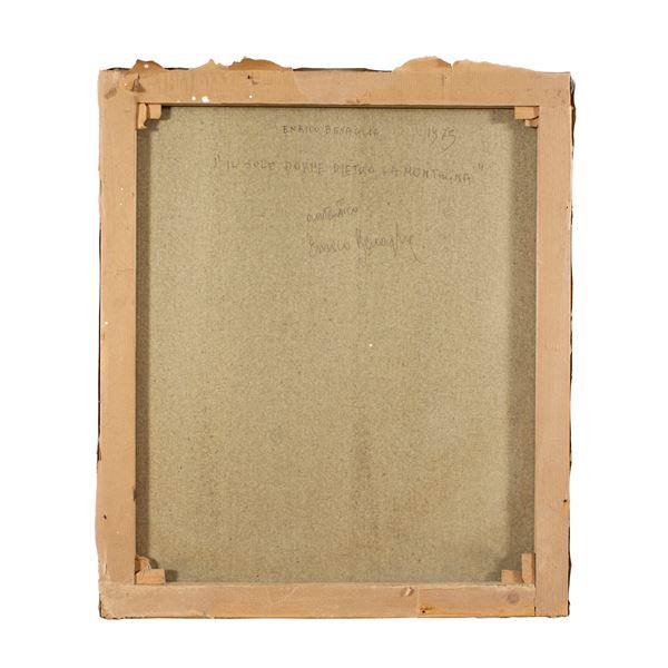 70x60 cm."Il sole dorme dietro la montagna", 1975, olio su tela, firmato e datato in basso a destra, firmato, titolato e datato sul retro