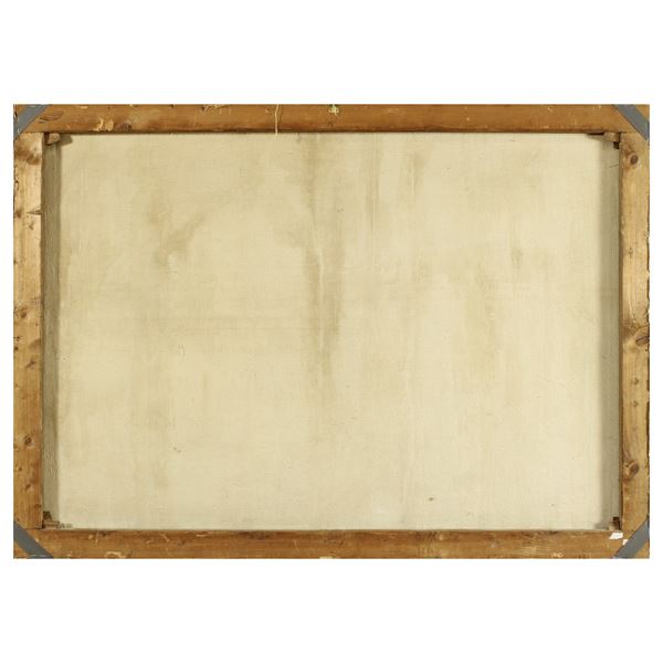 90x126 cm."Paesaggio marino della Bretagna", 1939, olio su tela, firmato e datato in basso a sinistra, entro cornice