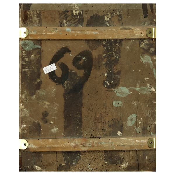 35x29 cm."Interno di cortile", olio su tavola, firmato in basso a destra, entro cornice