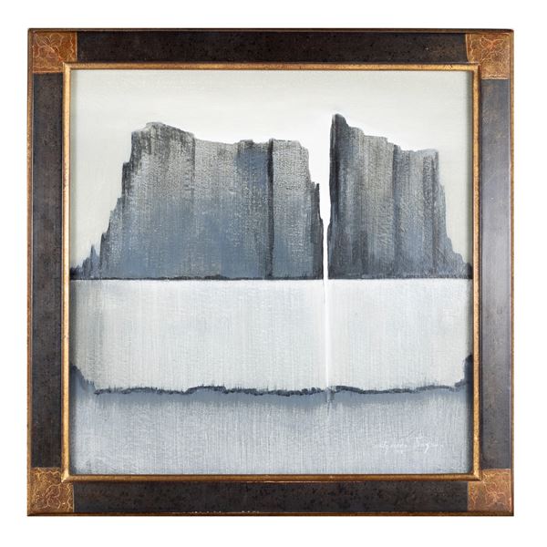 40x40 cm."Senza titolo", 1998, tecnica mista su tela, firmata e datata in basso a destra, entro cornice