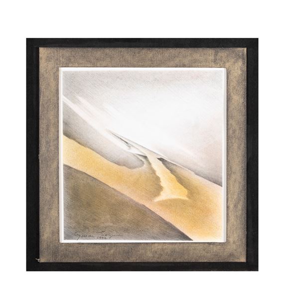 26x26 cm."Senza titolo", 1992, tecnica mista su carta, firmata e datata in basso a sinistra, entro cornice