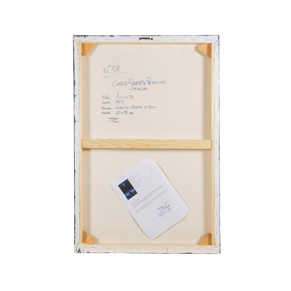 90x60 cm."Ascolto", 2023, acrilico e resina su tela, firmato e datato in basso a destra, titolato e datato sul retro