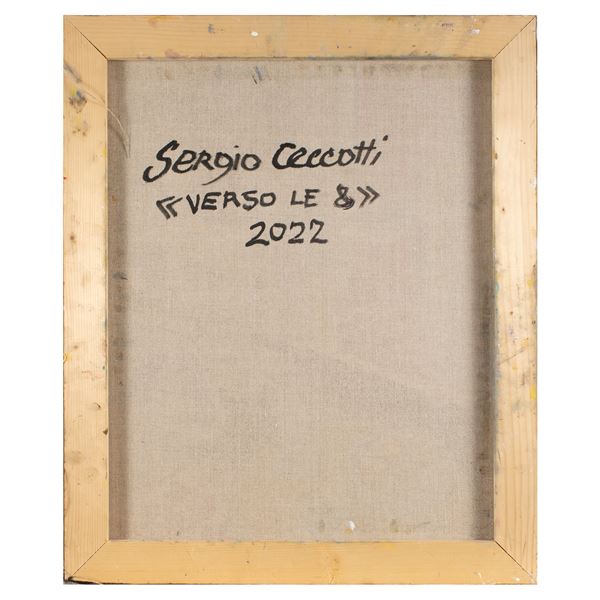 60x50 cm."Verso le 8", 2022, olio su tela, siglato e datato in basso a sinistra, firmato, titolato e datato sul retro