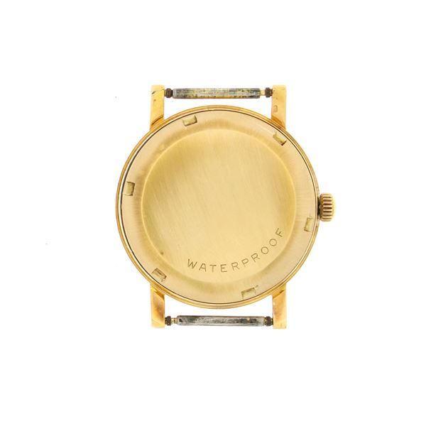 peso 37 gr.in oro giallo 18kt, ref. 166020, cassa tonda 35 mm. quadrante argentato con indici, datario ore 3, movimento meccanico carica automatica, calibro 565, cassa, quadrante e movimento firmati