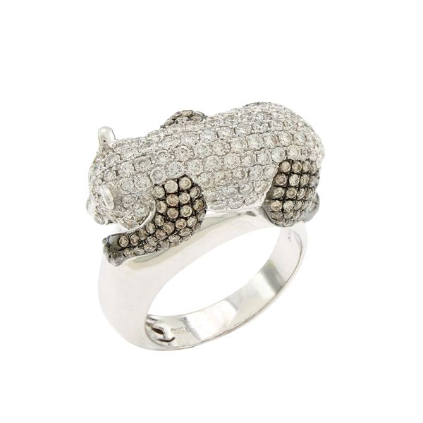 Anello con orsetto in oro bianco e nero 18kt