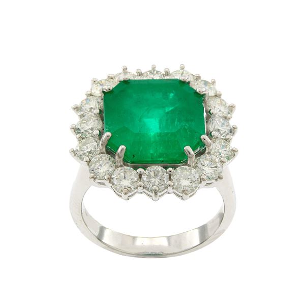 Anello in oro bianco 18kt con smeraldo naturale Colombiano