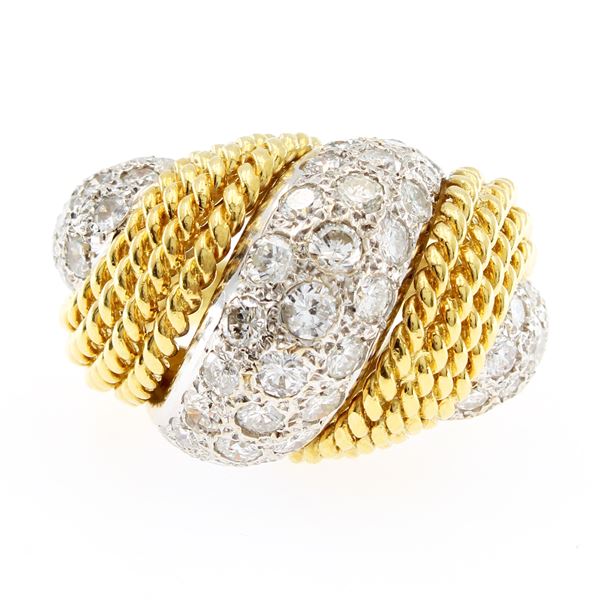 peso 17 gr.lavorato a cordoncino e diamanti taglio brillante ct 3,50 circa, misura 13