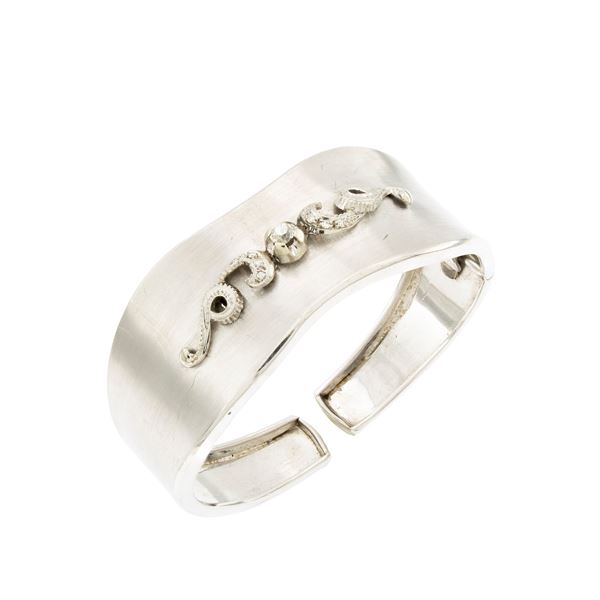 Bracciale a manetta in oro bianco satinato 18kt e diamanti