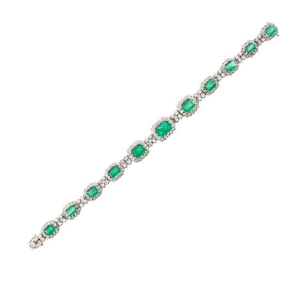 peso 29 gr.smeraldi taglio ottagonale a gradini ct 10 circa alternati da diamanti taglio brillante ct 4,50 circa, lunghezza 19 cm.