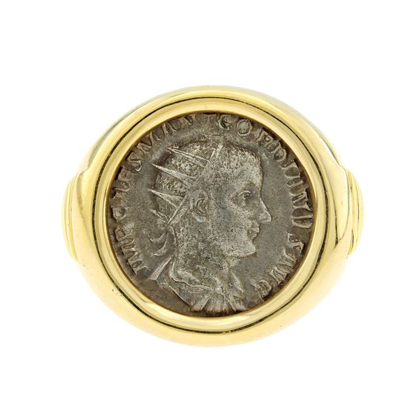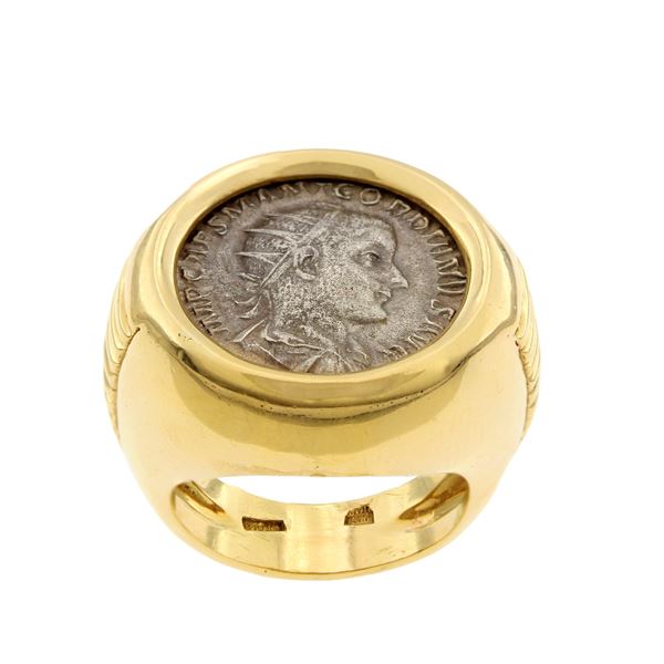 peso 31 gr.in oro giallo 18kt con moneta romana in argento, misura 19