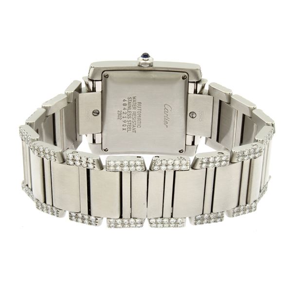 in acciaio, modello grande, ref. 484219QX - 2302, impreziosito da diamanti taglio brillante ct 6 circa, cassa carré 28x32 mm. vetro zaffiro quadrante argentato con numeri romani, vetro zaffiro, movimento al quarzo, bracciale in acciaio e diamanti con chiusura deployante, cassa quadrante e movimento firmati, completo di scatola