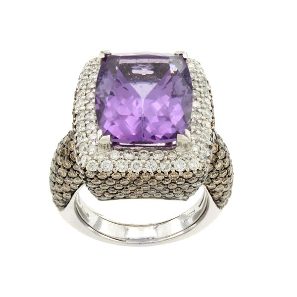 peso 16 gr.ametista ct 8 circa, diamanti e diamanti brown taglio brillante ct 4 circa, misura 12