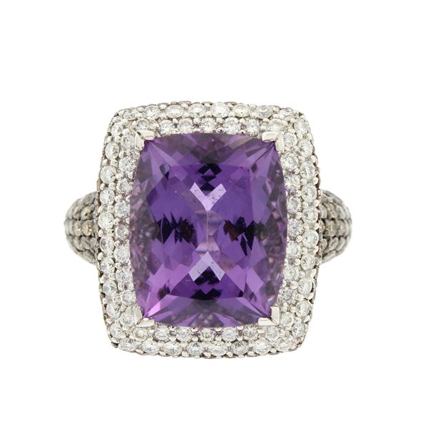 Crivelli anello in oro bianco 18kt ametista e diamanti