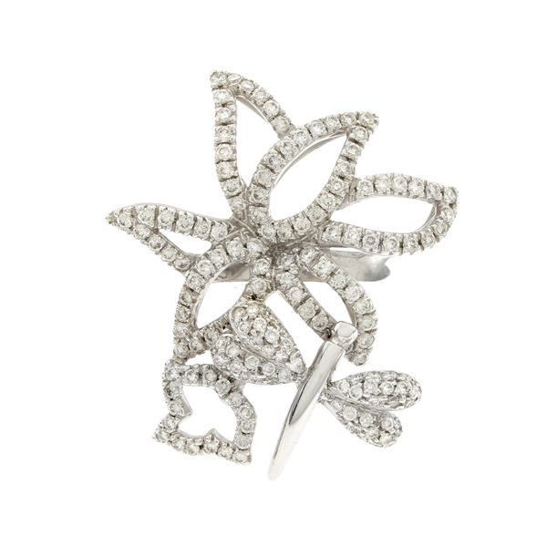 peso 9 gr.in oro bianco 18kt e diamanti taglio brillante ct 1,40 circa, misura 14