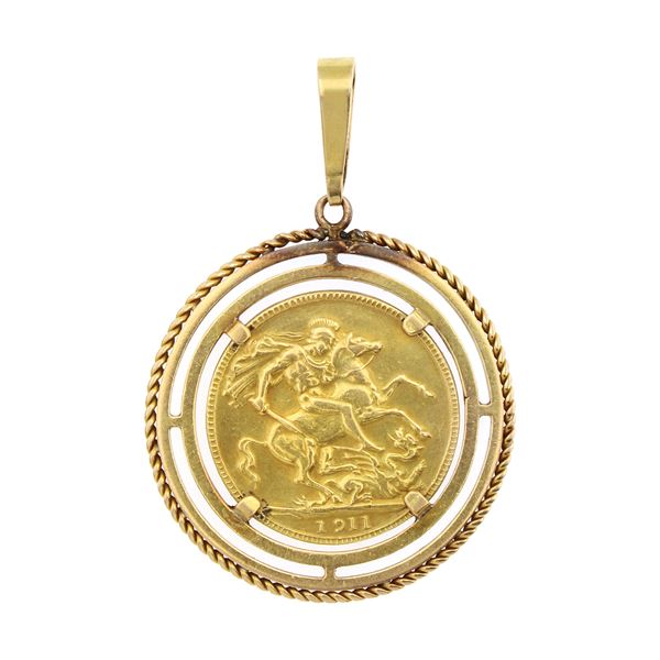 peso 9 gr.in oro giallo 18kt, sterlina oro 22kt, diametro totale 3 cm.