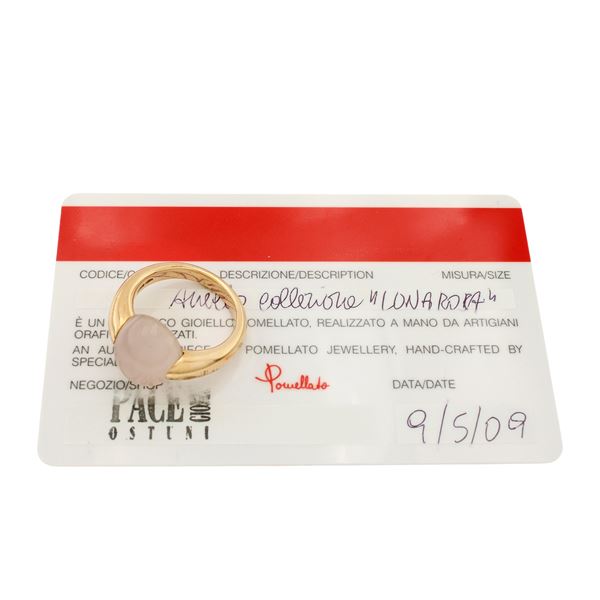 peso 9 gr.in oro rosa 18kt con quarzo rosa taglio cabochon, misura 13, completo di carta di garanzia
